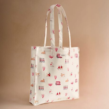 ラージブックバッグはCath Kidstonで最も人気のあるアイテムのひとつ。コーティングされたコットンの軽量ながらも耐久性のる素材で、使いやすいサイズのトートバッグです。内ポケット付き。ロンドンのアイコニックな風景に、Cath Kidstonらしい遊び心をプラスしました。近衛兵や馬、そして様々なポーズをとるスタンリーとその仲間たちまで、キャラクター一人ひとりが愛情と個性たっぷりに描かれています。