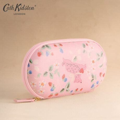 コーティングされたコットン生地のメガネケース。耐久性があり、メガネやサングラスを衝撃から守ってくれます。アーカイブから復活したチャーミングで華やかなデザイン。繊細な花々とイチゴが散りばめられた中を、スタンリー、ビグルス、クイニーといった愛らしい犬たちが、楽しそうにダンスをしたり飛び跳ねたりしています。キャラクター一人ひとりに遊び心たっぷりのハートが添えられているのもポイントです。