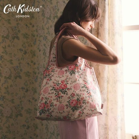 たっぷりとしたマチのあるショッパーです。開閉がスムーズなスナップボタンと、便利な内ポケット付きで、機能とデザインを兼ね備えています。アーカイブ柄からインスパイアされたHackney Roseプリントは、ヴィンテージ感漂うエレガントなデザイン。ピンクやコーラルの花々がロマンティックに咲き誇り、繊細なレースのハート型パッチがアクセントを添えています。
