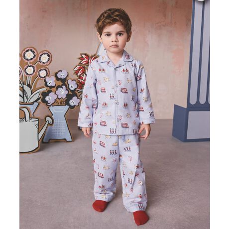 柔らかなコットン素材で着心地の良い、トラディショナルなスタイルのパジャマです。ロンドンのアイコニックな風景に、Cath Kidstonらしい遊び心をプラスしました。近衛兵や馬、そして様々なポーズをとるスタンリーとその仲間たちまで、キャラクター一人ひとりが愛情と個性たっぷりに描かれています。