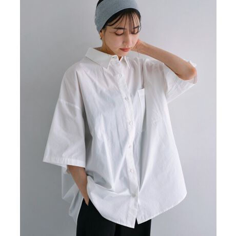 コットン オーバーサイズ 半袖 シャツ ブラウス evernavy エバーネイビー