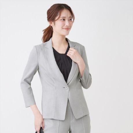同素材のスカート(品番187−75364)、パンツ(187−65364)、ノーカラージャケット(品番187−75364)も展開しています。