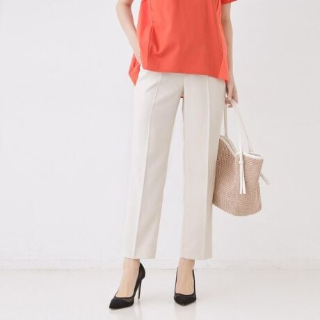 センタープレスを入れスッキリ見せたテーパードシルエットです。