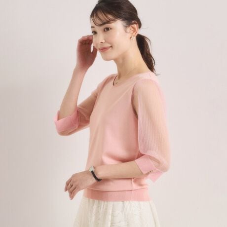シアー素材で切り替えた袖が軽やかな印象のニット。