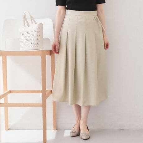 麻調ツイルラップ風プリーツスカート【洗濯機OKイージーアイロン防シワ】