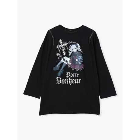 女の子のイラストがスタイリングのアクセントになるロングTシャツ。