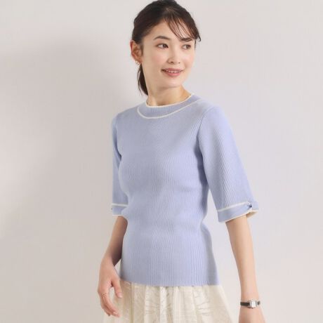 配色デザインに袖口のリボンディテールが大人可愛いニット。