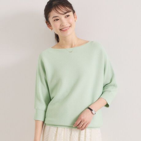 ボートネックでデコルテラインも美しく。