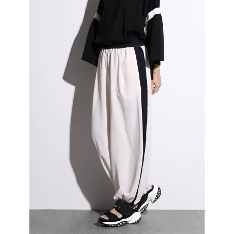 落ち感のあるなめらかな素材で仕立てた、ドレーピーパンツ。