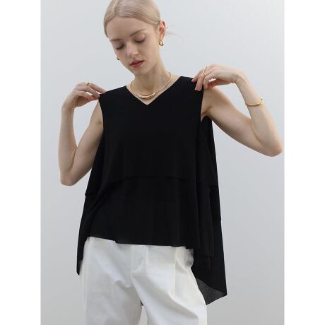 甘すぎない女性らしさが魅力のティアードデザイントップス。ボリューム感を抑えたすっきりめなシルエットが大人らしい着こなしに。着丈に前後差をつけ、着回しの効く汎用性の高い1着に仕上げました。