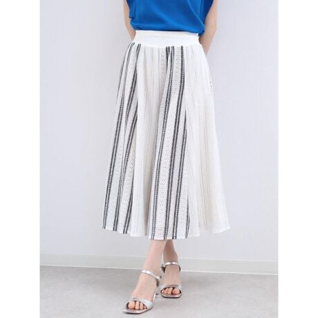爽やかなレース素材を使用した、軽やかな印象のフレアパンツ。