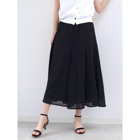 爽やかなレース素材を使用した、軽やかな印象のフレアパンツ。