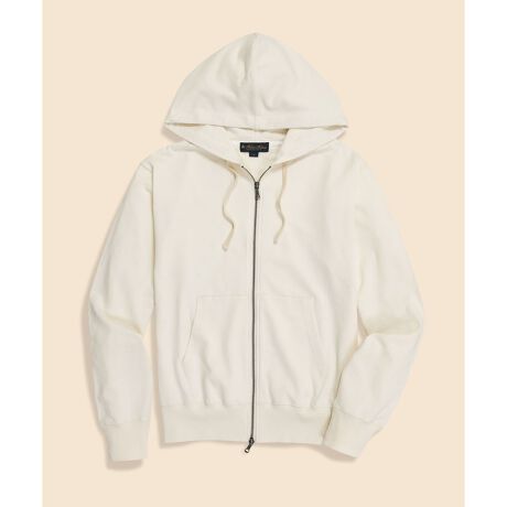 近年トレンドアイテムとしても注目されているアメカジの定番アイテム、ジップアップフーディー。耐久性に優れ、なめらかな肌触りが特徴のアメリカ産スーピマコットンを使用し、長く愛用できるシンプルなデザインに仕上げました。ブルゾンやブレザーの中に重ねても窮屈さを感じにくい、程よい厚みもこだわりのポイントです。