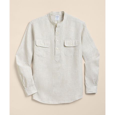 リネン ダブルポケット バンドカラー プルオーバーシャツ