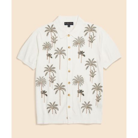 パームツリー(ヤシの木)のモチーフを刺繍したポロカーディガン