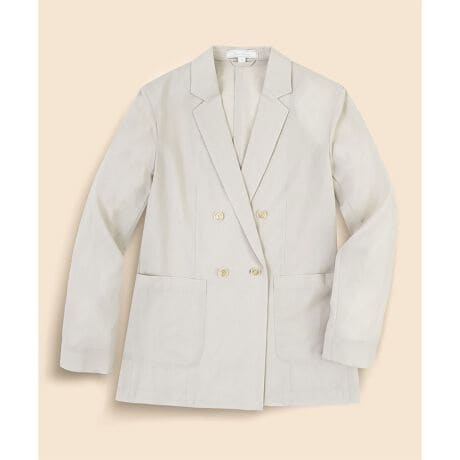 クラシックなダブルブレストのコットンジャケットに、大きめのパッチポケットをあしらい現代的に再構築しました。裏地が無く、シャツのように軽い仕様で通気性に優れ、さらっとした快適な着心地のジャケットです。コットンならではのナチュラルな素材感がエフォートレスな雰囲気を演出します。ブラウスやシャツだけでなく、シンプルなセーターやTシャツを合わせてもサマになる一着。