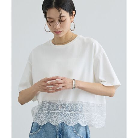 ラグジュアリーな雰囲気とTシャツの気軽さを兼ね備え、1枚で着映えするデザインです。