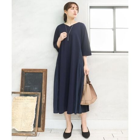 着心地抜群で着回し力の高い、ジャージーコンビドレス。