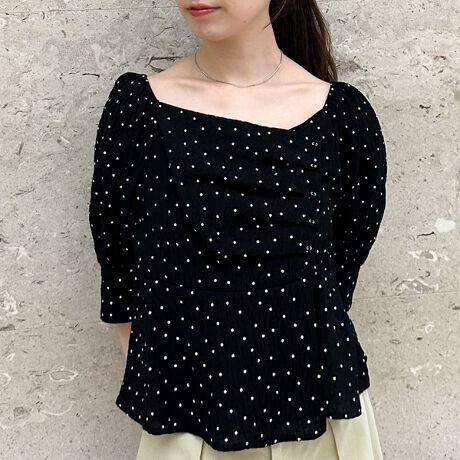 ・archivesで大人気のボタンタックデザインを取り入れたドットブラウスの五分袖ver.