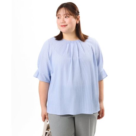 二の腕をカバーできる安心の袖丈と、袖口のタックがさりげないポイントになり、1枚でもジャケットのインナーとしても着回ししやすいデザインです。