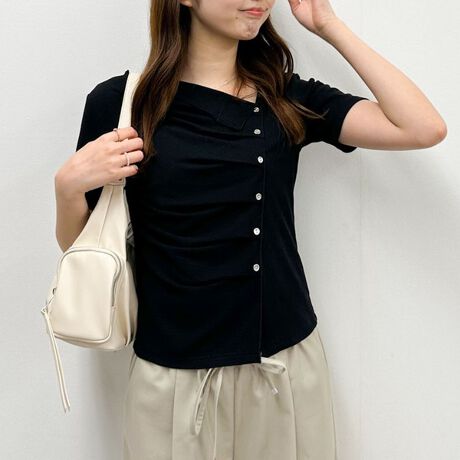 ・アシンメトリーの目を引くデザインでコーデの主役に