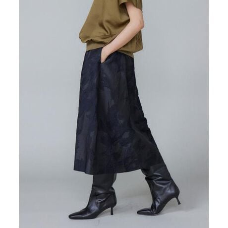 ■デザインオリジナルのジャカード生地を使用したリッチなスカート。アシンメトリーなタックディテールで表情豊かに仕上げました。スラッシュポケットやバックゴム仕様で着心地の良さにも配慮。後ろファスナーの引手にグログランリボンをあしらい、バックスタイルにアクセントを付けました。モード感のある長めのレングスもポイントです。■素材モードな柄感が印象的な先染めのジャカード素材。特殊な織機(ドルニエ)を使用したオリジナルの大きな柄と、様々な織り組織を使用した立体感のある表面などで高級感のある素材に仕上げました。見た目よりも軽く、シワになりにくい着心地の良さも兼ね揃えます。・裏地あり・ポケットあり・後ろファスナーあり・後ろウエストゴム仕様■サンプル撮影商品画像の商品はサンプルです。実際の商品とはサイズや色味、素材、デザイン等の仕様が若干変更になる場合がございます。■カラーについては、可能な限り実際の商品に近いカラーで撮影をおこなっておりますが、照明の関係により実際の製品とは色味が違って見える場合があります。またパソコン・スマートフォンなどの環境により、若干製品と画像のカラーが異なる場合もございます。現物と画像のカラー差異については返品理由となりませんので、予めご了承ください。■サイズ表記はあくまで目安となります。