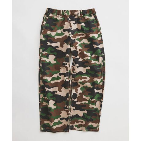 ・シルエット:古着のワークパンツをベースにした、太すぎず細すぎないリラックスストレート。柄のボリュームをシルエットが程よく中和し、すっきりとした印象を与えます。