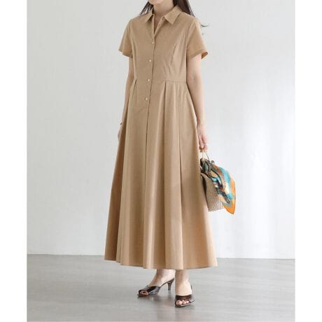 立体感のあるシルエットが魅力の上品なシャツワンピース。