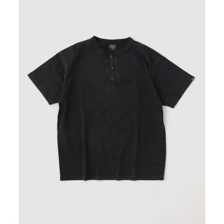 独特の風合いが魅力のスノーウォッシュ加工を施した、ヘンリーネックの半袖カットソー。