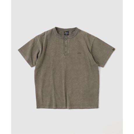 独特の風合いが魅力のスノーウォッシュ加工を施した、ヘンリーネックの半袖カットソー。