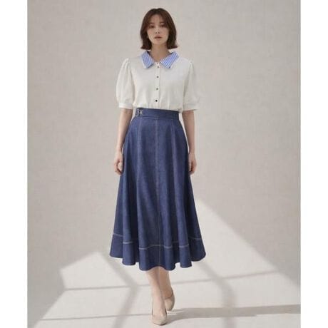 【美シルエットで差がつく、大人フェミニンなデニムフレアスカート】【Point】・ハイウエストデザインで腰位置を高く見せ、自然とスタイルアップが叶う一枚。・配色ステッチが縦ラインを強調し、すっきりとした印象に。・ベルトディテールがウエスト周りのアクセントになり、きちんと感もプラスします。・バックウエストはシャーリング仕様で、程よくフィットしながら快適な着心地です。・後ろファスナー付きで着脱もスムーズ◎ケア方法:手洗い可能透け感:なし裏地:なし伸縮性:あり光沢感:なし生地の厚さ:中肉
