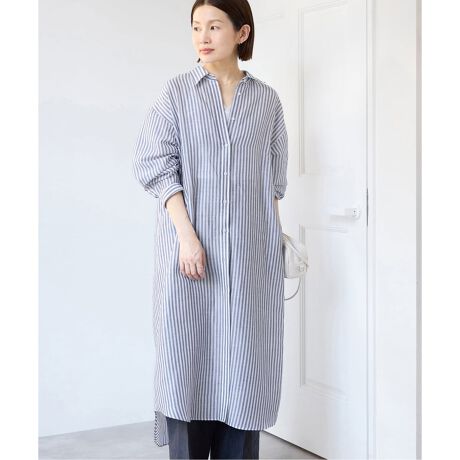 IENAの定番ラミーリヨセルシリーズと同素材でお作りした、ロング丈のシャツワンピース。