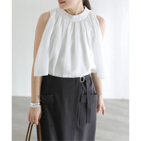 肩のスリットデザインが華奢見えを叶える、大人のための2WAYブラウス。