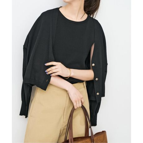 素材感:カーディガンは薄手で涼しく着れます。ノースリーブはやや厚めで透けにくく安心です。