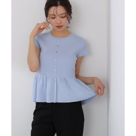 人気のペプラムニット。フレンチスリーブで真夏まで着られる軽やかな一枚です。短め丈と高めのウエスト位置でスタイルアップ効果を期待。パンツ合わせでカジュアルに着こなすのがおすすめです。