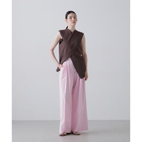 シルエットはワイドでフロント部分の細かなタックデザインがポイント。