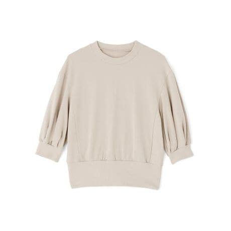 細番手の糸でハイゲージに編むことで、コンパクトに編み上げ、後加工でふくらみを持たせた、ハリ感がありながらも、ふくらみのある裏毛素材で仕立てました。