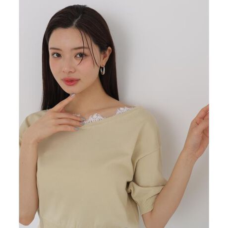 襟まわりに繊細なレースをあしらい、さりげない華やかさをプラスしたニット。デコルテをキレイに見せる広めのネックで、肩を落とした着こなしも楽しめます。ゆったりとしたシルエットながら、ウエストリブですっきり見えに。スカートにもパンツにも合わせやすい一枚です。