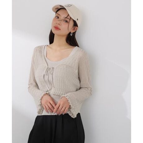 程よいラメ感が魅力のニットアンサンブル。インナーキャミソールは無地、カーディガンは控えめなラメ糸素材で派手すぎずデイリーに活躍します。短丈カーディガンが上品な印象をプラスし、ワンピースとも相性抜群。セット使いはもちろん、単品でも着回せます。