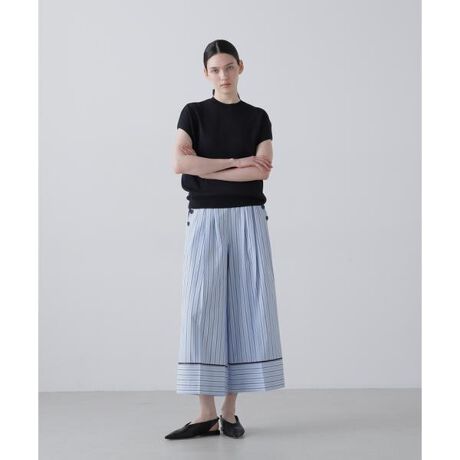 ストライプのガウチョパンツでポケット口に飾りで釦がついています。