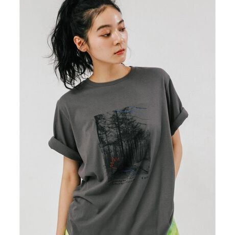 ポリエステルコットンの空紡糸を使用した天竺編み生地を使用。ドライでざっくりとしたドライな風合いが特徴。吸汗性・速乾性にも富み、夏にはぴったりな素材です。ブランドの象徴でもあるタイニーガーデン蓼科の森の風景を染み込みプリントしたオリジナルフォトTee。今回はその中にシカを佇ませております。ぜひシカを探してみてください。写真を落書き風にアレンジしたデザインを今季は少しポップに仕上げました。どんなボトムにも合わせやすく1枚で様になるTシャツです。