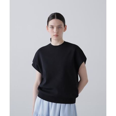 合繊素材でドライな質感とエレガントな印象の網組織で仕上げられたニットです。