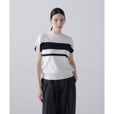 合繊素材でドライな質感とエレガントな印象の網組織で仕上げられたニットです。