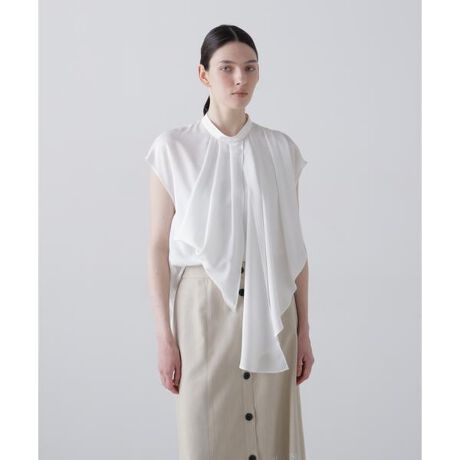 ドレープデザインが程よいドレッシーさを演出するピーチファイユブラウス