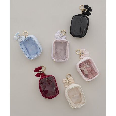 煌めくビジューリボンが付いた、大人可愛いクリアポーチ。