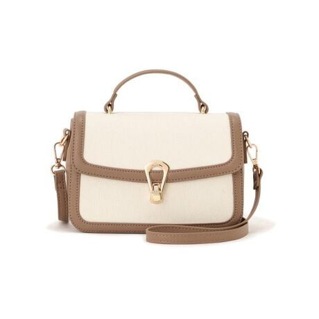 [型番:1216181403]洗練されたバイカラーが映えるミニショルダーバッグ。キレイめにもカジュアルな着こなしにも合わせやすいデザインです。フラップに付けた金具で開閉でき、中身をしっかりカバーします。肩掛けと斜め掛けができるショルダーは取り外し可能。※モデルの着用画像の場合、光の当たり具合により、実際の色味と異なって見えることがございます。色味は、商品単体の画像をご参照ください。