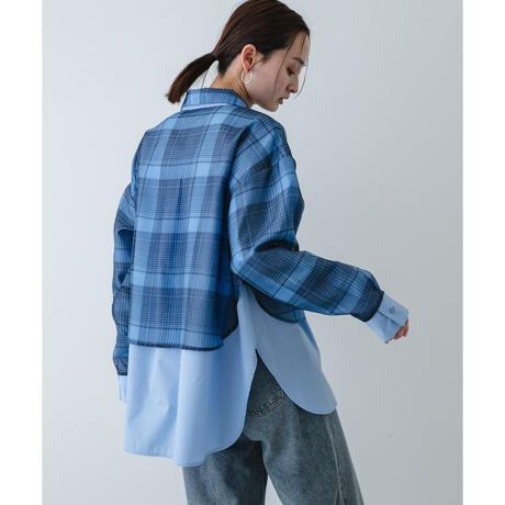 モダンにアップデートしてくれる、主役級のドッキングシャツ。シャツの凛とした佇まいに、チュール素材の柔らかな透け感が重なり、自分らしい洗練されたレイヤードスタイルを叶えてくれます。シワを気にせずデイリーに使える扱いやすさも魅力。一枚でさらりと着こなすのはもちろん、前を開けて羽織りとして取り入れても、シアーチェックの表情がスタイリングに旬のニュアンスを添えてくれる一着です。