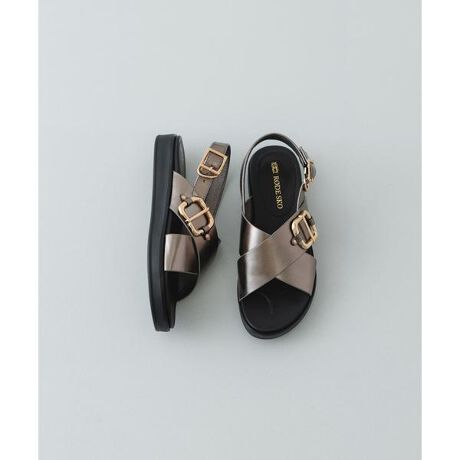 程よいボリューム感のある黒のソールが、全体を引き締めてくれます。甲をしっかりホールドする太めのクロスベルトと、かかとのストラップで安定感のある履き心地です。