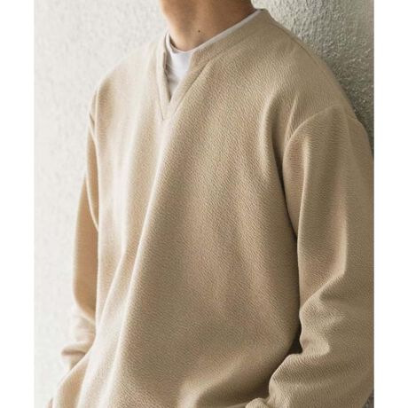 襟元と裾からのインナー風デザインが、奥行きと清潔感を演出するフェイクレイヤードトップス。重ね着特有のゴワつきがなく、一枚で完成度の高いコーディネートが楽しめます。ボディには表情豊かなジャカード生地を採用。細かな凹凸が単色でも奥行きと高級感を生み出し、肌離れも抜群です。柔らかなブルートーンが顔周りを明るく爽やかに見せ、スキッパーデザインの首元が大人の抜け感を演出。身幅にゆとりのあるリラックスシルエットながら、裾のレイヤードで全体をスマートに引き締め、春の主役トップスとして活躍します。