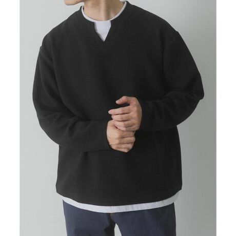 襟元と裾からのインナー風デザインが、奥行きと清潔感を演出するフェイクレイヤードトップス。重ね着特有のゴワつきがなく、一枚で完成度の高いコーディネートが楽しめます。ボディには表情豊かなジャカード生地を採用。細かな凹凸が単色でも奥行きと高級感を生み出し、肌離れも抜群です。柔らかなブルートーンが顔周りを明るく爽やかに見せ、スキッパーデザインの首元が大人の抜け感を演出。身幅にゆとりのあるリラックスシルエットながら、裾のレイヤードで全体をスマートに引き締め、春の主役トップスとして活躍します。